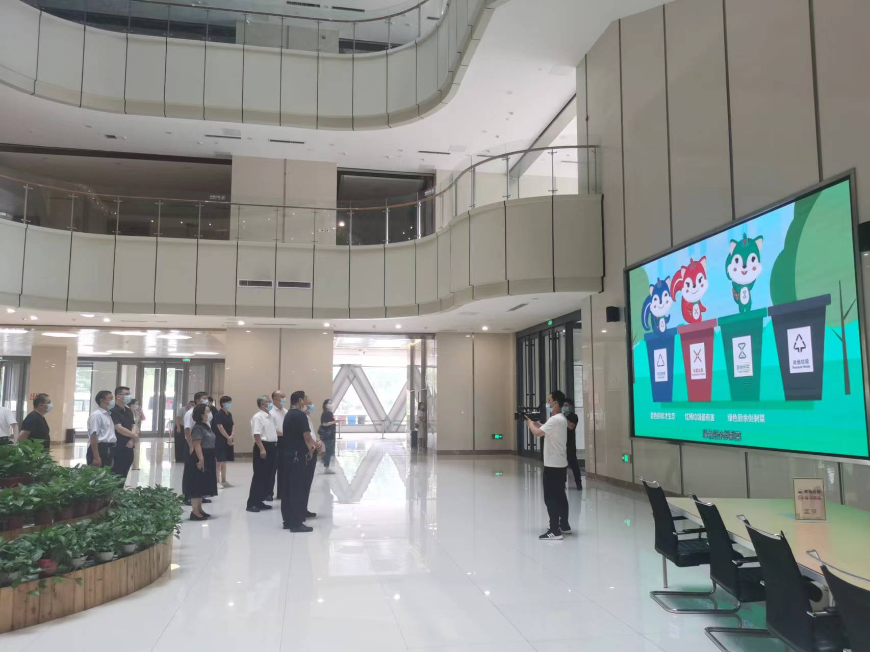 8月18日,省人大城市生活垃圾分类管理联动监督执法检查组督导检查科技中心垃圾分类工作。先后查看了科技中心垃圾分类基础设施、日常工作台账、有害垃圾集中储藏室和厨余垃圾处置情况,对科技中心垃圾分类工作给予高度肯定,并要求加大宣传力度,提高垃圾分类意识,科学合理设置分类点位,方便群众投放,确保垃圾分类各项工作落到实处。